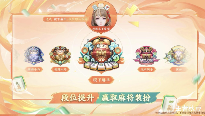1月22日起王者荣耀麻将玩法将在稷下广场雅致上线,川麻律例。通过打麻将普及段位,当达到稷下麻王时还能免费领取元流之子发型。麻将行为中国国学之一,深受接待。打王者排位累了,不妨去稷放学院约上三五好友来一局张皇刺激的麻将吧。