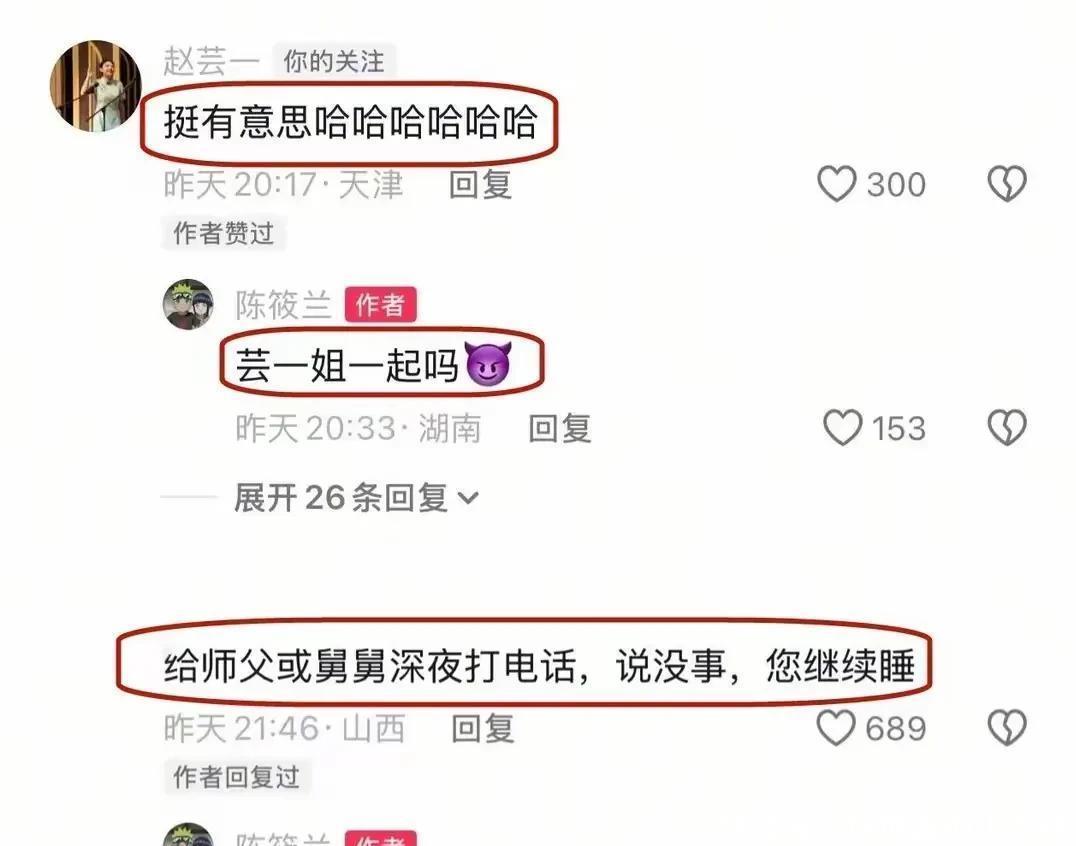 最近,陈筱兰又有了新动态。蓝本,他被网友们怂恿着想要在德云社“搞点事情”,但又不敢告成对舅舅和师傅下手,于是就选用在寝室拿师叔们练手。这一操作可太有料想了,某次他在寝室的“开顽笑”致使把正在休眠的郭霄汉、党霄咏吵醒,师叔们那真确又无奈的反应,让东谈主忍俊不禁。而网友们则是看吵杂不嫌事大,在指摘区纷纷出倡导策,这场景就像是一场欢悦的线上大派对。就连赵芸一也被诱骗过来,以为这事儿好玩又有料想,忍不住参与到这场欢悦的征询中。