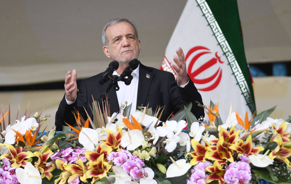 2月11日,在伊朗都门德黑兰,伊朗总统佩泽希皆扬在伊朗伊斯兰立异顺利47周年仪式当作上说话。新华社记者沙达提摄